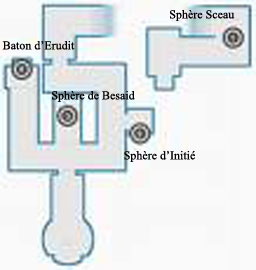 Vous pouvez finir l’épreuve en poussant l’autel mais un objet très utile vous attend avant. Allez récupérez la sphère d’initié (Cf. carte) et insérez la dans la pièce situé en face de l’Autel. Une salle secrète apparaît alors ou il y a le bâton d’Erudit. Un objet est caché dans chaque temple et il est impératif de les récupérez pour certaines quêtes annexes.