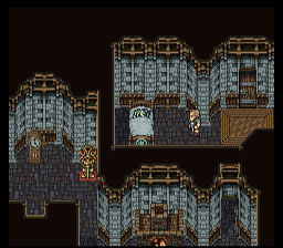 Vous remarquerez la capacité « Voler » de Locke. Un des moogles a la capacité « Dancer », utilisez-la et un de vos adversaire sera enfouis dans un sable mouvant, l’entraînant à la mort. Une fois que vous avez battu les gardes venant vers vous, choisissez un groupe et descendez affronter le dernier garde. Après les combats, Locke prend Terra et l’emmène à l’écart. Il appui sur un bouton qui ouvre une sortie. Quelque instant plus tard Terra se remet de ses émotions (n’oubliez pas ce passage il pourrait servir à nouveau). Sortez de la ville et dirigez-vous au château de Figaro au Sud-Ouest de votre position.