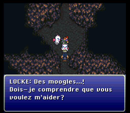 Ensuite nous allons contrôler un autre personnage : Locke, dans la maison du vieil homme. Ce dernier informe Locke de la situation. A ce moment là Locke accepte d’aider Terra. Il faut la retrouver et la ramener au château de Figaro pour la présenter au roi. Aussitôt dit aussitôt fait, Locke retrouve Terra immédiatement. Mais les gardes vous ont retrouvé aussi ! Mais soudain, sortit de nul par, voici des moogles qui viennent à votre secours. Nous contrôlons donc les moogles et pour changer de groupe il faut appuyer sur la touche « Y », organisez et placez les moogles pour empêcher les gardes d’arriver jusqu'à Terra