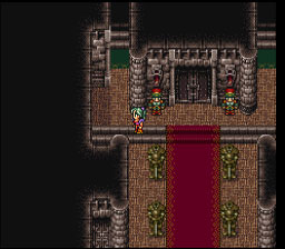 Juste au dessus de ces portes, vous trouverez deux passages, un à gauche et un autre à droite, passez dans l’un des deux pour trouvez un coffre, ouvrez-le et vous obtiendrez « Aile de Fenix ». Sortez du château par la sortie Ouest (sans retourner sur la carte) vous trouverez une entrée, allez-y vous y découvrirez l’histoire des frères Edgar et Sabin.