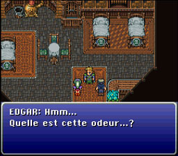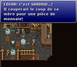 En sortant de la maison vous rencontrez un homme qui vous informe que Sabin est partit en direction des montagnes. Retournez à Figaro Sud et allez faire un tour du coté du Café, vous y découvrirez un homme étrange au comptoir. C’est en fait Shadow.