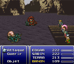 Plus loin vous allez vous faire attaquer par le boss Vitros. La magie « Fire » de Terra est plus qu’efficace. Attaquez en priorité avec des coups spéciaux et utilisez Banon pour guérir tout le groupe. Si un de vos personnage meurt utilisez une Aile de fénix pour le faire revivre (excepté Banon bien sûr).