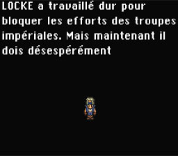 Moogle nous propose alors de choisir parmi les trois situations entre Locke, Sabin et les autres. Prenons dans l’ordre de gauche à droite, donc commençons par Locke. Par contre pensez à vous ré équiper car vous n’avez plus d’équipement.