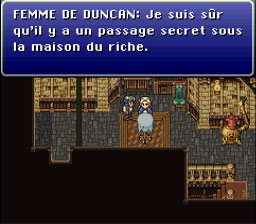 Cette dernière insinue que Kefka veut empoisonner tout le peuple de Doma. Une fois que le garde sort, allez dans la troisième pièce (prenez donc la troisième porte) pour ouvrir les affaires remplis de GP. Ensuite allez délivrer Celes, par contre ne prenez surtout pas la montre, c’est un piège.