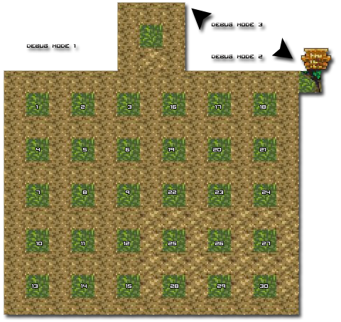 Le Debug Mode 1 est la partie sur laquelle vous arrivez automatiquement quand vous atterrissez sur l’île blanche.