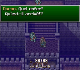 Vous vous réveillez... soudain, quelque chose se passe à côté. Allez voir et vous trouverez les cadavres des soldats à terre. Soudain, une personne vêtue d'une cape pourpre entrer dans le château, suivez-le.