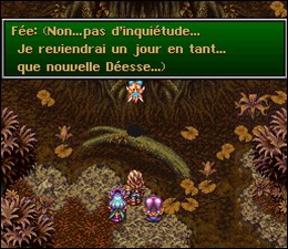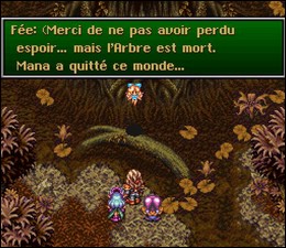 Allez ensuite au nord-ouest puis au nord-est. Enfin, allez au nord et… ! L’Empereur Dragon a détruit l’Arbre Mana !! Il tue ensuite la Fée !!