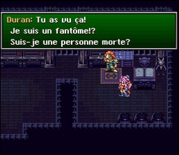 Parlez au marin pour prendre un bateau, étrangement, il vous propose un voyage gratuit…acceptez. En route, on s’aperçoit que le bateau ne va pas à Byzel, il tourne en rond autour d’une île… Vous êtes dans une cabine du navire, sortez et allez à droite, puis en bas, en chemin, il y a des bruits suspects et étranges, c’est sûrement le Vaisseau Fantôme !!! Allez tout à l’ouest et la Fée intervient, elle sent la présence d’un esprit. Battez les monstres et montez les escaliers en haut à droite. Allez au sud-ouest et passez la porte, malheureusement une force obscure vous empêche d’entrer. A côté de la porte, des inscriptions sont notées :