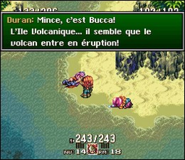 Vous êtes dans le volcan, la « Grotte du Rivage ». Allez à l’est puis au sud, encore au sud et encore une fois au sud. Allez au nord-est puis au nord. Allez à l’est et tuez les monstres pour faire apparaître un passage, à gauche. Dirigez vous vers le sud-ouest et allez au sud puis à l’est. Allez au sud-est puis au sud. Soignez et sauvegardez à la statue et allez au sud. Battez les monstres pour ouvrir un passage à l’ouest. Allez au sud-ouest puis au sud et ensuite à l’ouest et encore à l’ouest puis au sud-ouest. Sauvegardez puis allez au nord, puis sortez de la grotte par l’ouest. Là, se trouve un homme nommé Jagan. Il disparaît et le volcan entre en éruption ! Mais la Tortue Géante que vous avez vu arrive pour vous sortit de l’île, elle vous sauve et le volcan explose.