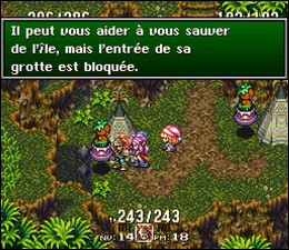 Allez au nord et encore au nord pour voir une Tortue Géante passer ! Retournez à la plage où vous vous êtes échoués et allez à l’est puis au nord et à l’est pour vous régénérez et sauvegardez. Retournez sur la plage pour allez à l’est puis au sud-est ensuite au nord-est pour entrer dans la Jungle. Allez au nord-est, au sud puis au nord-est. Allez au nord puis au nord-est et enfin à l’est pour arriver au Village des Prêtres Noirs pacifistes. Achetez des armes et armures puis parlez au prêtre noir au sud-est du village, il vous informe que le « Résident de la Mer » peut vous aider à fuir l’île, sa grotte se trouve à l’ouest de l’île mais un rocher est tombé devant l’entrée…