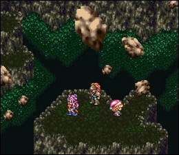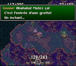 Sortez du village (soignez et sauvegardez au totem) et allez à l’ouest, puis au sud, à l’ouest et au nord. Allez au nord-ouest puis l’ouest et encore à l’ouest. A gauche, il y a un rocher, appuyez sur A dessus et invoquez Gnome pour qu’il ouvre un passage dans la terre.