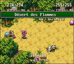 Allez à l’est, au sud puis à l’est. Allez au sud-est, au sud puis au sud-est. Allez en direction de l’est puis au sud-est pour arriver à l’Oasis Deen. De jour, achetez des casques et accessoires. Faîtes une halte à l’auberge puis repartez au désert. Allez au nord-ouest, à l’ouest et encore à l’ouest. Dirigez vous au sud-ouest puis au sud-est. A l’est se trouve l’entrée de la Vallée des Flammes. Là, se trouve Bigieu, Bill et Ben. Ils vous barrent la route en attendant que Bigieu entre dans la Vallée des Flammes.